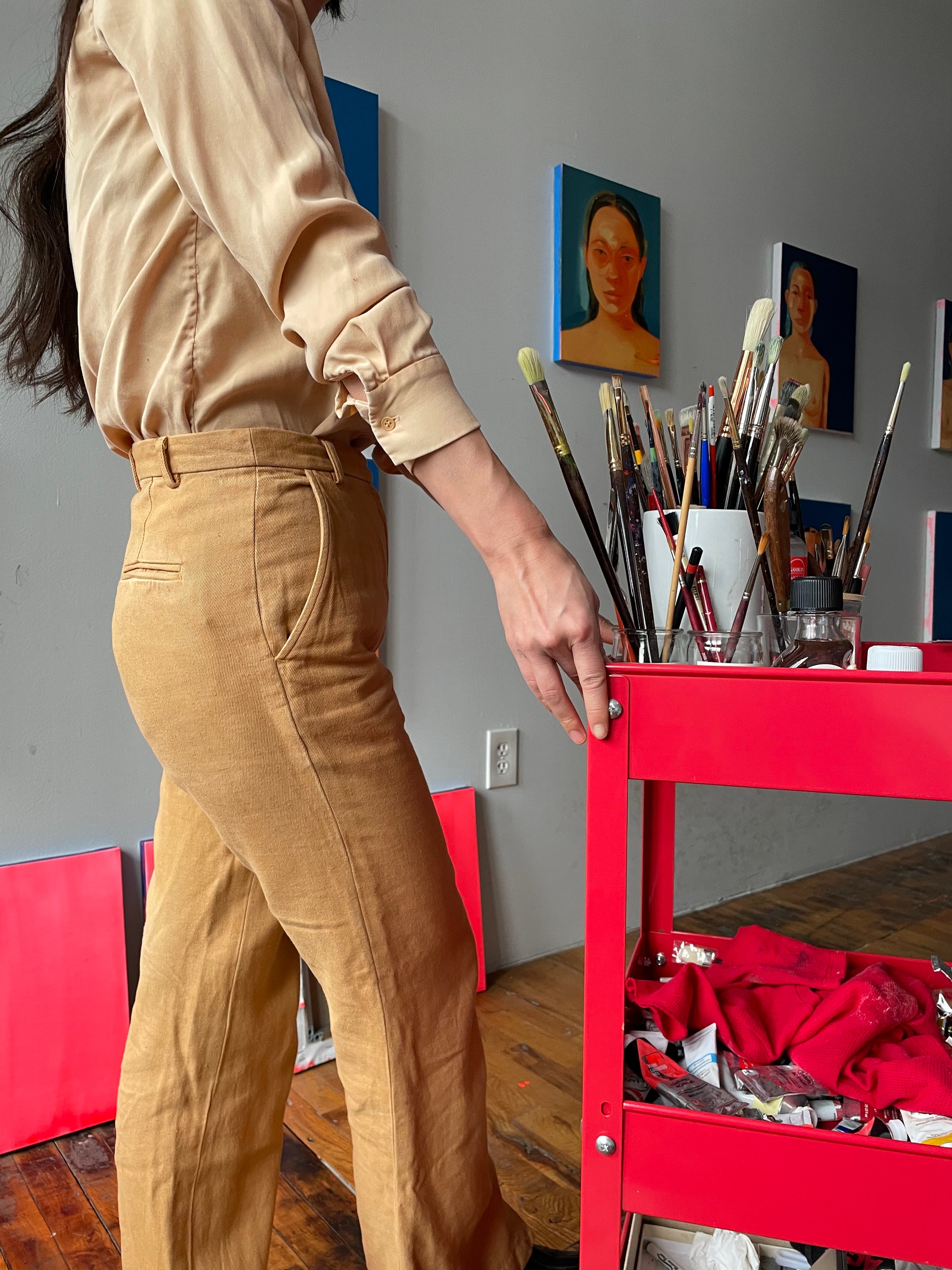 Na Kim at her studio, wearing the Paco Pant and Lola Blouse.