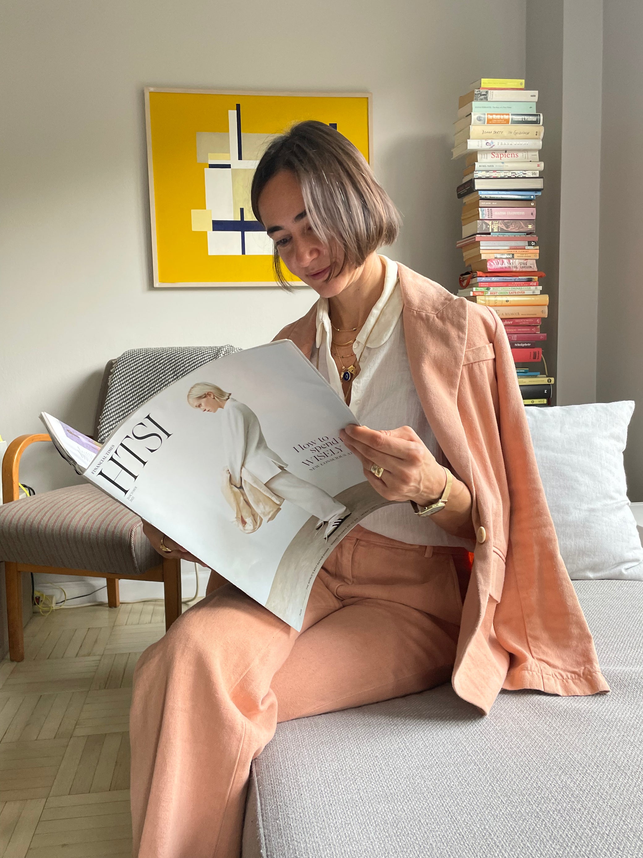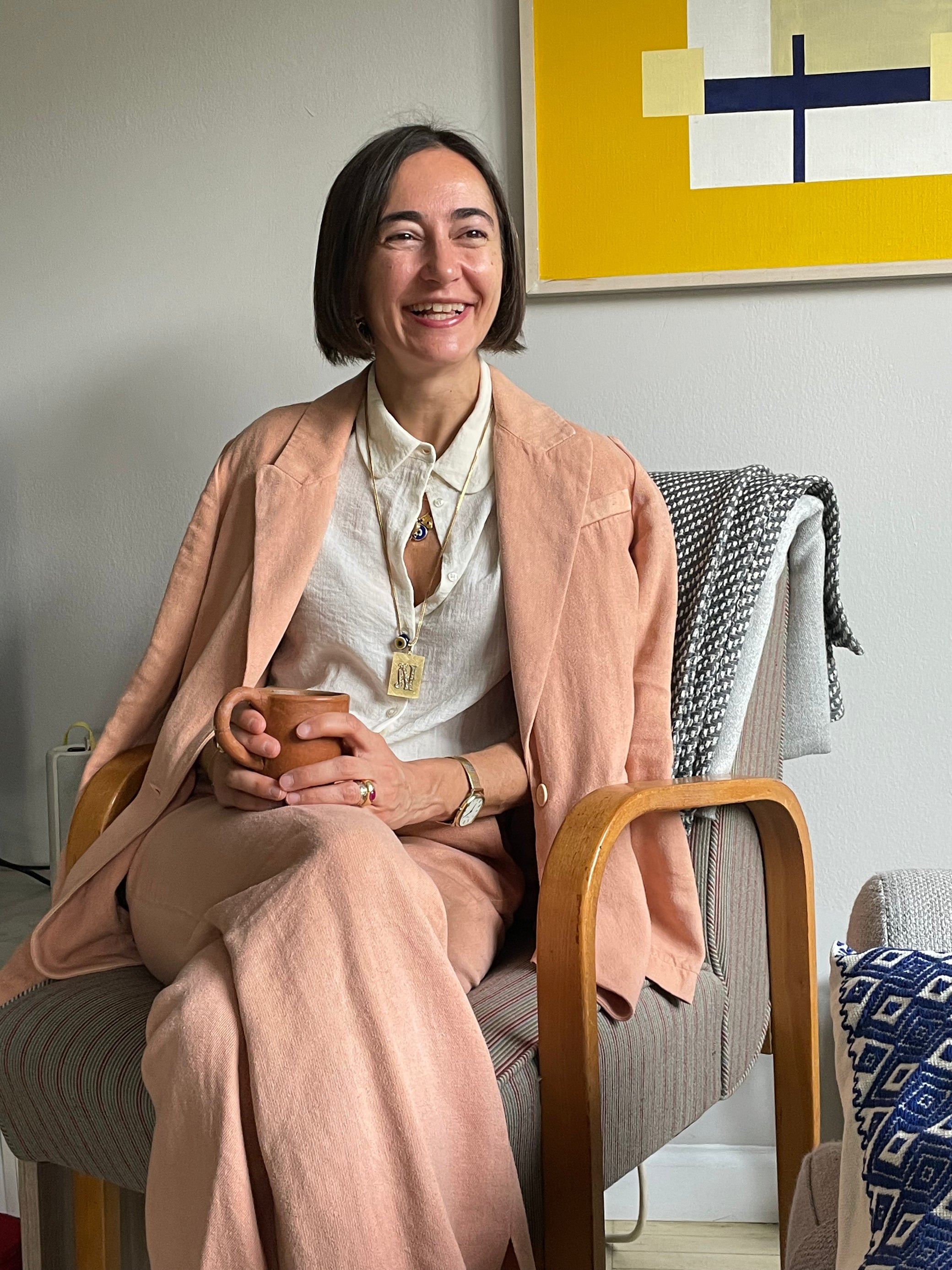 Nessi Erkmenoglu was interviewed in her home in Brooklyn, wearing her Pamela and Paco.