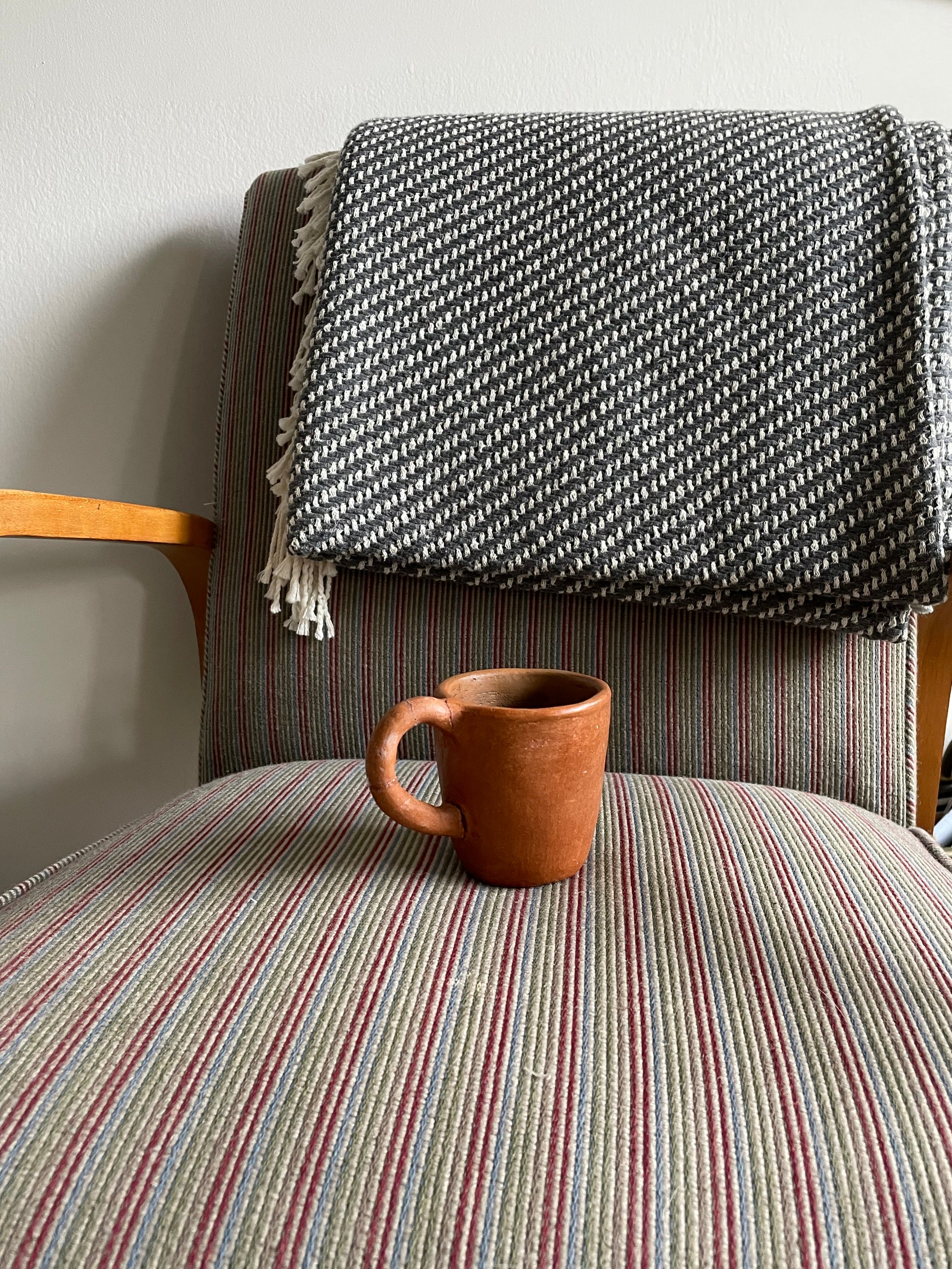 I drink my coffee in this cup, I have a moment with myself before everything and anything begins. I actually found this cup, at a restaurant in Puerto Escondido. It’s a beautiful cup made of the local red clay. It broke a bit, which makes it even more beautiful.
