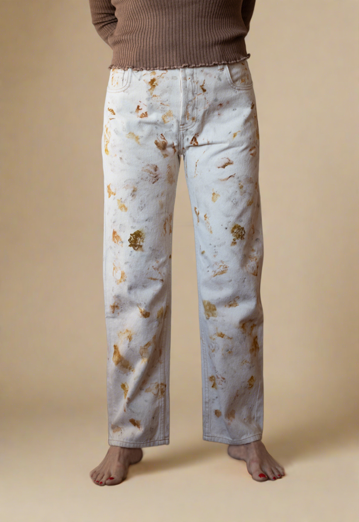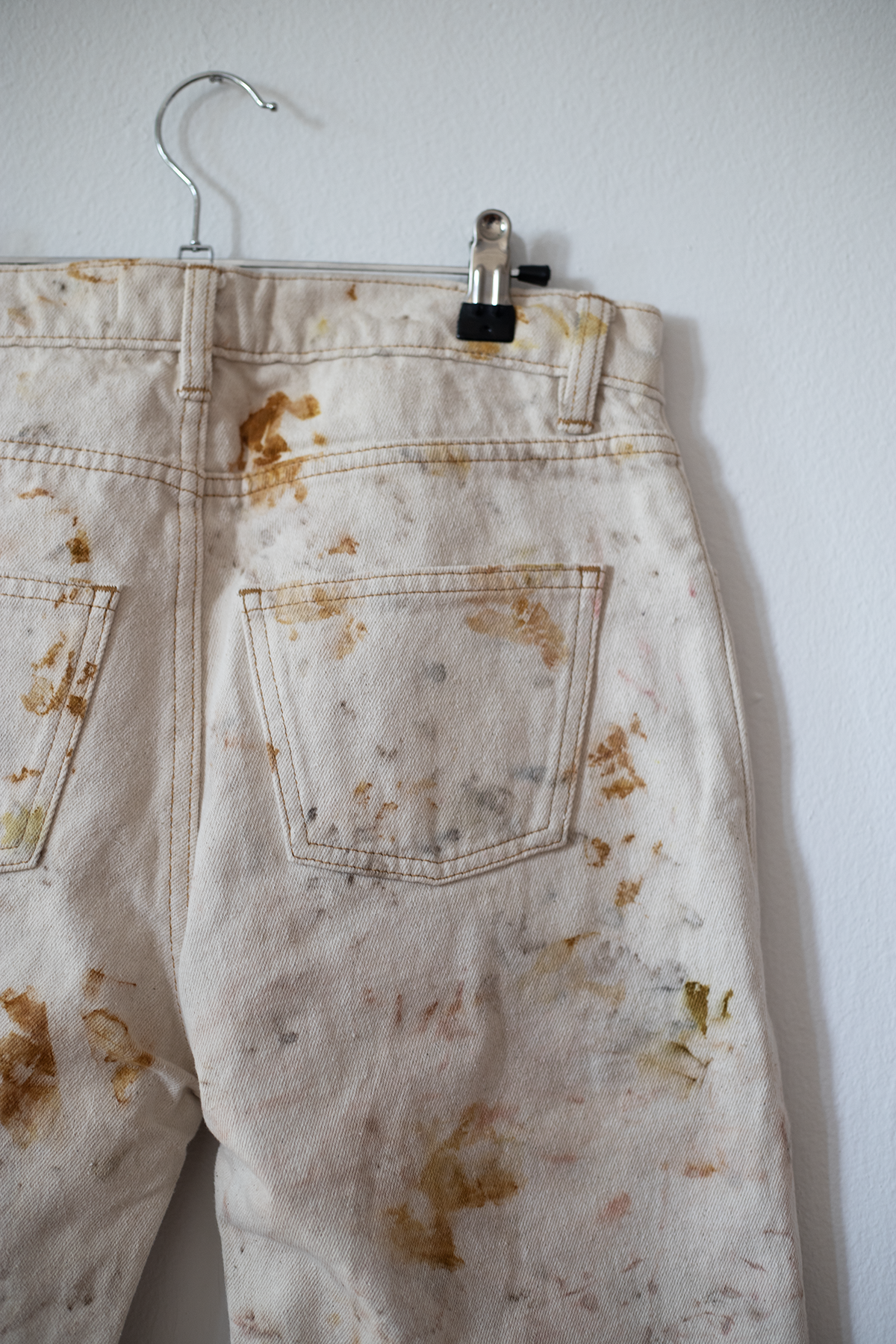 The use of acidic products ( vinegar, lemon… ) in your naturally dyed garment can alter the color of the garment.
